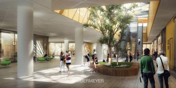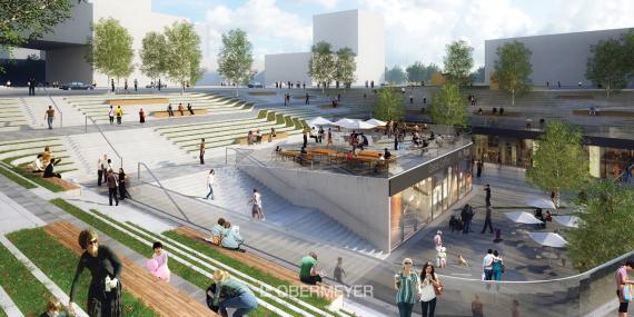 Obermeyer has crafted a modern new urban landmark through three core planning strategies: efficiency, aggregation, and vitality.