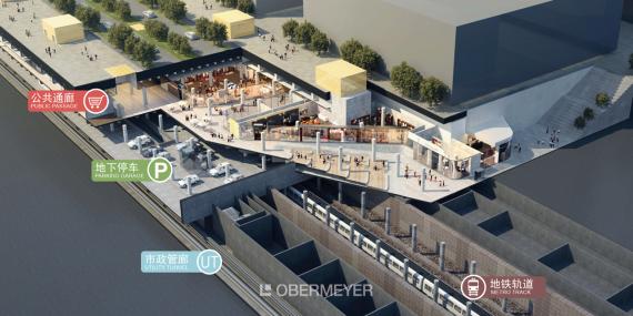 Implementing "Fast Underground, Slow Aboveground," Obermeyer designed four underground systems for Qin Lake CBD’s core: