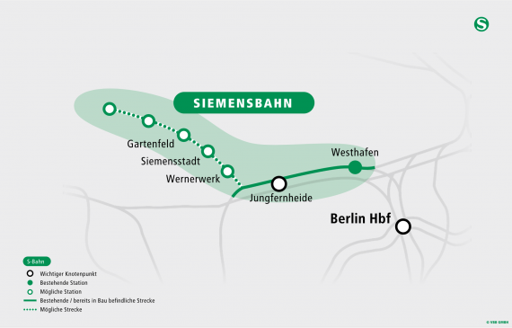 西门子铁路是德国柏林的一条S-Bahn(城市快铁)线路,全长4.5公里,最初于1929年开通,1980年停运。该线路将作为i-2030基础设施项目的关键部分,进行全方位现代化改造并重新投入运营。激活改造后,该线路将连接荣芬海德站与加滕费尔德站,并与新建的西门子广场新区、柏林环形铁路、中央火车站及柏林勃兰登堡机场紧密串联,大幅度提升区域交通便利性。